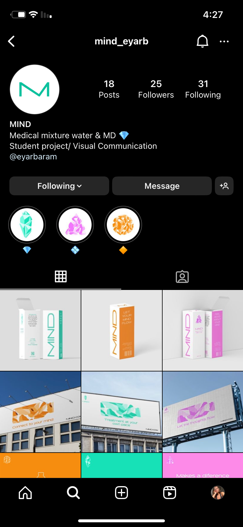 As part of Educational project I was required to brand a water or oil based product. In my project I chose to brand a water-based medical product. The product combines water and MDMA, and is intended for the treatment of people suffering from PTSD syndrome. It was important to me that my brand transmit a positive attitude and optimism for its customers, since this is a sensitive phenomenon in the mental field.